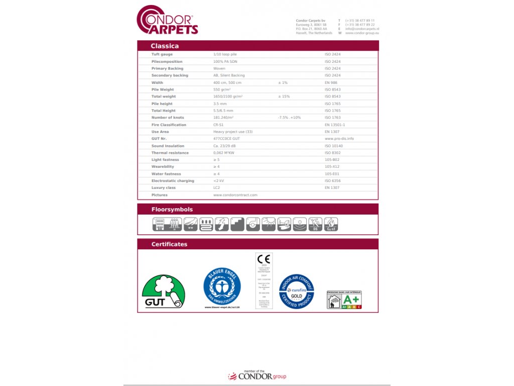 Koberec Classica je vhodný do všech komerčních prostor s nejvyšší zátěží.