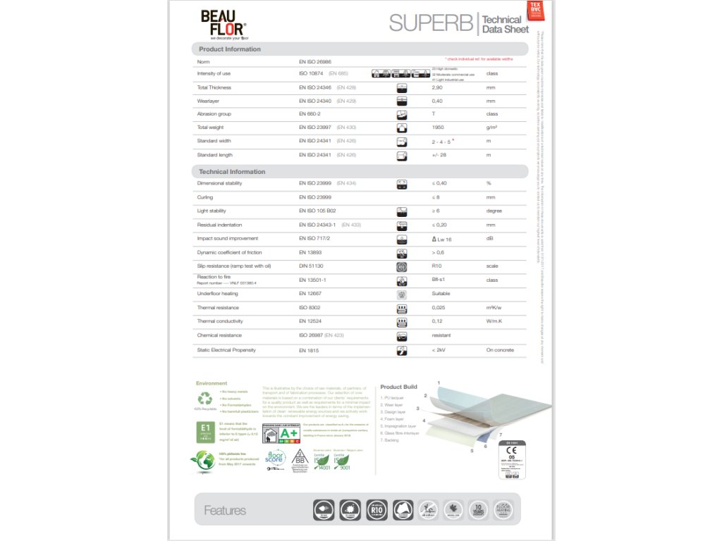 PVC Superb je nenáročné na údržbu, odolné vůči poškrábání, UV záření a to vše díky povrchové PU úpravě.